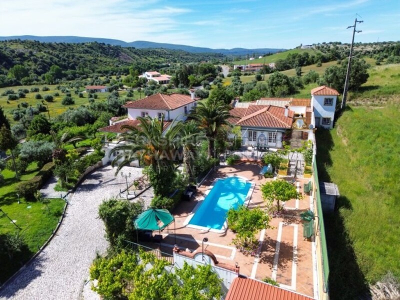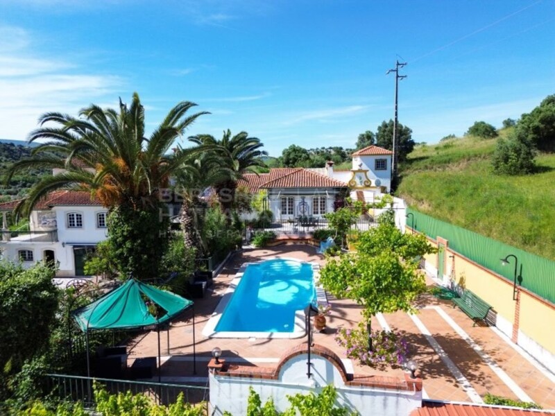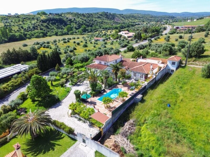 Located in Torres Novas, on a plot of land with 20,840m2, you will find this 3-storey villa with 8 bedrooms and a floor area of 535 m2. On the ground floor, we have the entrance that connects to the equipped kitchen, living room and lounge with fireplace and 2 toilets - this one with direct connection to the pool - bedroom hall - 3 bedrooms (supported by a bathroom) and a suite. Spiral staircase to the attic which has 2 more bedrooms with 1 bathroom in common and a suite. In the basement we have a garage for 2 cars, 1 kitchen/living room, 1 toilet and a studio but it can be used for other purposes. This property has a solarium that connects the villa to an outdoor area - with a workshop, changing rooms for the pool, rustic kitchen with stone oven and barbecue. The gardens are self-watered. It has a kennel, 2 terraces and 1 private balcony with views over Serra D'Aire and Candeeiros. It is well maintained with charming details, tiles and Portuguese pavement. The 20,840m2 plot can be used for agriculture, vegetable garden, or be transformed into a golf course, tennis, riding arena or other solution It has 1 well and 1 borehole. Property well located 20 min from Fatima, 1h 15 from Lisbon airport and with good access to the A1 and A23. Get in touch to schedule a visit. Energy Rating: D.