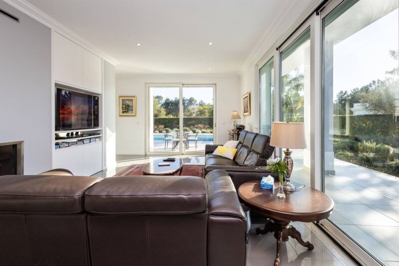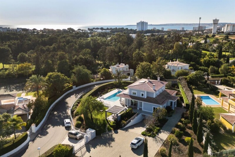 This magnificent and sophisticated property is surrounded by lush vegetation and is next to a golf course, very close to the Vau beach and within walking distance of the picturesque village of Alvor, known for its gastronomy and natural beauty, offering an elegant and relaxed style. Impressive upon arrival with a 2400 m2 plot and its well-kept garden, featuring fruit trees and corners that invite you to enjoy a book or simply make the most of the wonderful Algarve weather. The house has incredible natural light, and all the windows were designed to make the most of it. It consists of 3 en-suite bedrooms, one on the main floor that can also be used as an office, and two on the first floor with elegant walk-in closets and natural light. All rooms are equipped with air conditioning, electric shutters, and wooden floors, adding a sense of comfort and elegance. The first-floor bedrooms are connected by a balcony that provides a beautiful view of the lush surroundings, perfect for sunny breakfasts. As we enter the bright hallway, we have on the right the en-suite bedroom or office, and a guest bathroom. On our left, an elegant and modern kitchen with a granite island and 3 stools, fully equipped with top-of-the-line Miele appliances: 84-bottle wine fridge Gas stove 2 ovens Microwave Plate warmer Dishwasher Double sink Pantry Cabinets around the entire kitchen Ceramic flooring This kitchen connects to the enormous living room, which is divided into three parts: A dining area comfortably seating 12 people, A reading and library area, A TV room. Between these two rooms, there is a double-sided glass gas fireplace that mirrors its image on both sides. The windows throughout this area allow for contact with and visibility of the entire pool (with a retractable cover) and garden. The basement is divided into distinct areas, with the option for an additional bedroom or games room, with a complete bathroom already finished beside it. The laundry room is equipped with: Miele washer and dryer Double sink Floor-to-ceiling cabinets and drawers Storage/warehouse with floor-to-ceiling cabinets. Garage for 3 cars, with floor-to-ceiling cabinets. The house has solar panels, electric shutters, double-glazed windows, 9 air conditioning units, and in the garden, an area with a gas BBQ and sink. Luxury and good taste in perfect harmony.