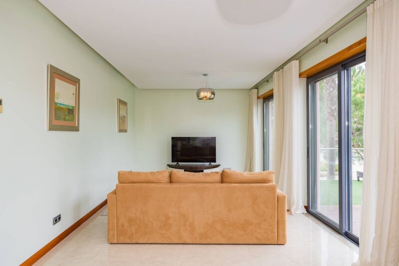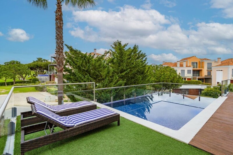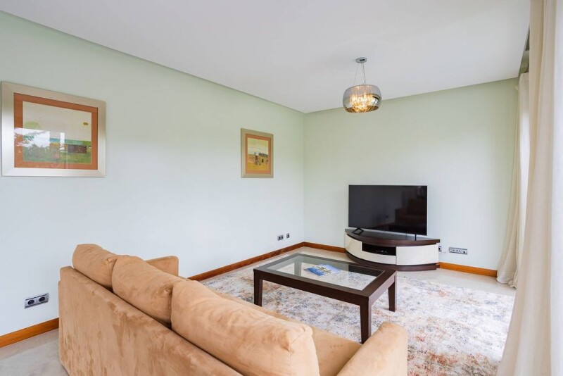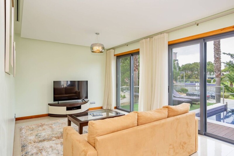 A two-bedroom apartment situated in the luxurious Vale do Lobo resort, in a prime location next to the Royal Golf Course, just a short walk from the beach, resort restaurants, and tennis academy. Faro Airport is only twenty minutes away. The apartment seamlessly blends modern design with traditional elements, offering spacious indoor and outdoor areas. It features a large entrance hall with a private lift providing direct access to the interior of the apartment. The bright and spacious living room boasts floor-to-ceiling windows, allowing direct access to the terrace and infinity pool, along with an elegant suspended fireplace, creating a warm and sophisticated atmosphere. The open-plan layout flows seamlessly into the dining area, which is adjacent to the fully equipped kitchen with its own outdoor access, leading to an al fresco dining space and built-in barbecue. The bedrooms are ideally positioned on opposite sides of the entrance hall, ensuring maximum privacy. On the left side, the generous master suite features a built-in wardrobe, en-suite bathroom with a shower and bathtub, and a private balcony. On the right side, the second bedroom also benefits from its own private bathroom. Additionally, the apartment includes a guest WC and a laundry room. For added convenience, the property offers a private garage space, a designated area for a golf buggy, and a storage room. The apartment has integrated air conditioning, sound system, and electric shutters. Embrace the exclusive resort lifestyle and enjoy proximity to all amenities in this stunning apartment.