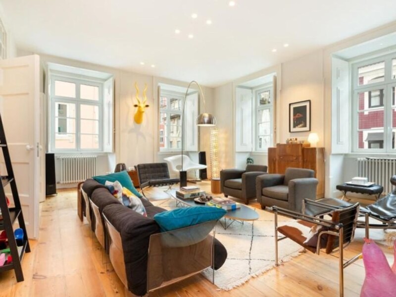 Four-bedroom apartment completely renovated and with plenty of natural light, close to Cais do Sodre. With 258 sqm, the apartment has two living rooms, one with 59 sqm and the other with 27 sqm. The 18 sqm kitchen is equipped with an extractor hood, stove, oven, dishwasher, fridge, washing machine, and dryer, SMEG brand appliances. It also has a suite with 28s sqm withcloset , and three bedrooms. Inserted in a Pombaline building, the apartment was recently renovated by an architect, maintaining some of its original features, such as the high ceilings, the wooden floor and shutters, and the wood-frame wall . For greater thermal and acoustic comfort, the apartment has central heating and triple glazing. Located a few minutes from Cais do Sodre, close to public transport, high street shopping, and a wide range of services. Porta da Frente Christie's is a real estate agency that has been working in the market for over 25 years, focusing on the best properties and developments, whether for sale or for rent. The company has been selected by the prestigious brand Christie's International Real Estate to represent Portugal, in the regions of Lisbon, Cascais, Oeiras and Alentejo. Porta da Frente Christie's primary mission is to provide excellent service to all of our customers. Energy Rating: B-.