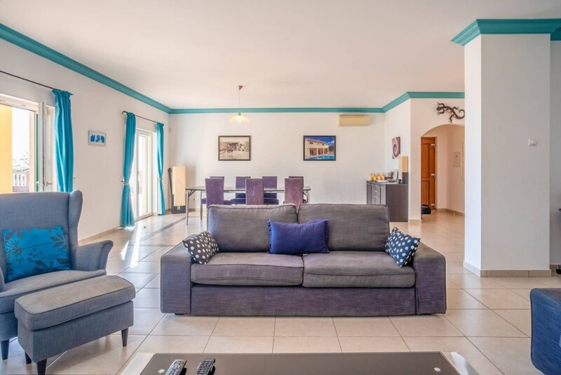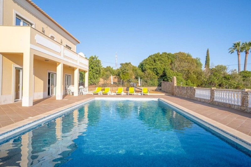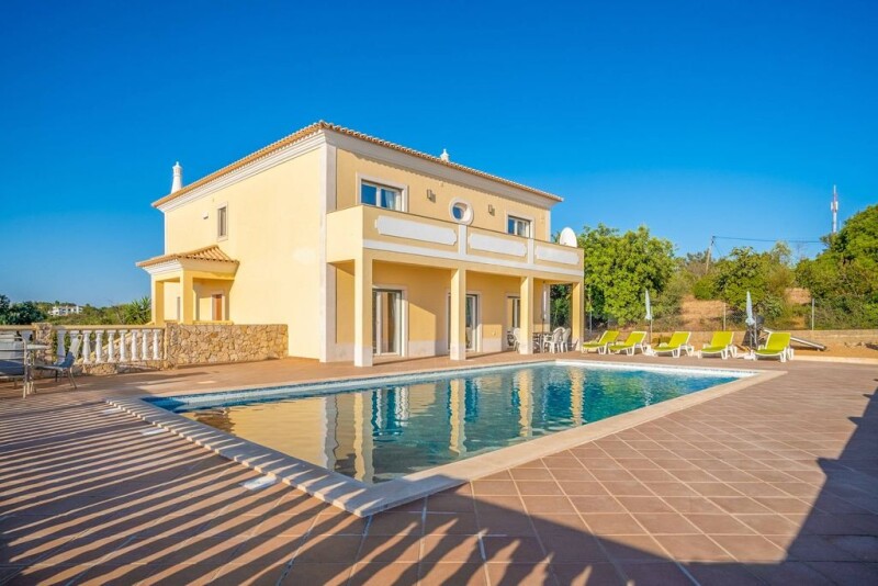 Fantastic traditional-style villa located in a privileged position with sea views in Boliqueime. This spacious south-facing five-bedroom villa has a total construction area of 527 square meters and is set on a very private plot of approximately 2000 square meters. The villa consists of a ground floor, first floor, and basement, and includes five bedrooms, four of which are en-suite with private terraces. There is a spacious living and dining room with plenty of natural light and access to the pool area, a kitchen with a laundry area, a large garage with space to park four cars, and a basement storage area. Outside, the villa features a pleasant lawn next to the barbecue, the ideal area for family meals outdoors, and a generously sized heated pool, where you can enjoy the superb sea views all year round. The villa also has solar panels for water heating, underfloor heating, air conditioning in various rooms, a heated pool, and a private borehole. The villa is just a 15-minute drive from Vilamoura and 10 minutes from the center of Loulé.