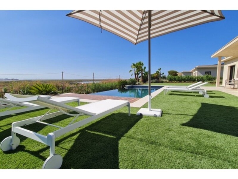 Wonderful luxury villa, located just a few minutes from the city centre of Faro and the most beautiful beaches that Portugal has to offer. Being situated right by the foot of the splendid Ria Formosa, it enjoys an exceptional view of the lagoon. This is a 2-storey, 3-bedroom villa , with a total living area of 521sqm on a 1011sqm plot. On the ground floor, the large glass entrance door opens to a luminous interior, covered in natural light. The villa has a modern fully equipped kitchen, and the spacious living room enjoys an open-air feel with an atmosphere inviting to relax and unwind. The living area opens up to a wonderful large Mediterranean garden with a private 49sqm swimming pool and a covered terrace. On this floor you will also find 3 luxury ensuites , each equipped with a dressing room. With a contemporary and elegant architectural design , each room of this villa is optimized for full comfort. One floor down, one will enjoy the luxury of a SPA, gym, air-conditioned wine cellar, hammam and a laundry room. Here is also a closed garage for two cars. The Condominium: The villa is located inside a luxury condominium made up of 37 prestigious villas, that is located at the foot of the splendid Ria Formosa lagoon. Its superb location on a private plot of more than 5 hectares benefits from its close proximity to the capital of the Algarve and a clear view of the Atlantic Ocean. Its location has been carefully selected to offer its residents immediate proximity to downtown Faro, Praia de Faro beach and many amenities. Stunning location, facing the Ria Formosa lagoon, the villas also enjoy an impressive view. The Location: Algarve is known worldwide for its beaches, golf courses and hinterland, and Faro is its capital. With a mild, sunny Mediterranean climate all year round, the Faro region is becoming increasingly popular on an international scale. It is the mild climate, combined with the natural beauty of its landscapes, which make this region of Portugal an attractive destination all year around. Its two hundred kilometres of coastline bordered by magnificent sandy beaches, its highly regarded golf courses, its fine dining and the many water sports on offer are assets that will appeal to the most discerning expatriates. This busy, lively town and beach destination is both welcoming and authentic all year round. Fall under the spell of this charming city and the many wonders it has to offer.