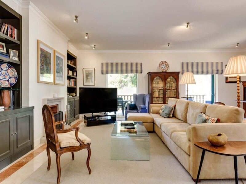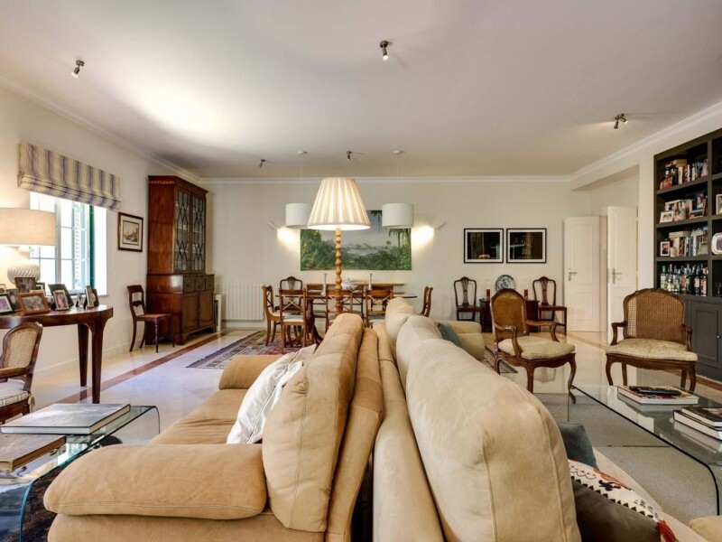 This spectacular 4-bedroom apartment, with an additional suite in the service area, is situated in an exclusive condominium in the stunning Estoril area. With its generous spaces and luxurious amenities, this residence offers an exceptional lifestyle for those who value comfort and elegance. - Key Features Spacious Bedrooms: The apartment features 4 suites, all with built-in wardrobes, ensuring privacy and ample space for the whole family. Impressive Living Room: The living room is truly impressive, with approximately 77 square meters of space. Well-Equipped Kitchen: The kitchen is fully renovated and equipped with modern appliances, providing a functional space to prepare your gourmet meals. Adjacent to the kitchen is the laundry room, also equipped with a washing machine, dryer, and sink. There's also a maid's room or storage room, with a service bathroom. Private Balcony: with space for a dining area and socializing space. It overlooks the condominium's gardens. - Location This residence is strategically located, offering easy access to the A5 and other transportation means. It's less than a 5-minute drive from the center of Estoril and the beaches. Moreover, it's situated in a tranquil and secure environment, providing the perfect balance between urban life and serenity. - Additional Information: • Air conditioning in all rooms and central heating • Heat pump for water heating • 3 parking spaces in the garage and free spaces in the courtyard for visitors • Storage room in the garage for additional storage • Double-glazed windows • Built-in wardrobes in the hallway accessing the rooms and within each room.