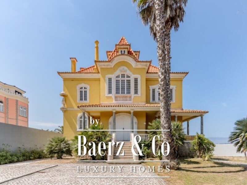 Villa São Paulo is an iconic property, located in Estoril, which was built in 1911 by the Portuguese aristocrat Benedita Mello Alves Nogueira. Set on a 2,550 sqm plot of land, this Palace is a true architectural jewel with superb sea views. The main house with a gross private area of 1,100 sqm consists of four floors, served by an elevator. On the main floor we find an imposing entrance hall, and several social spaces that give access to a large open terrace of around 100 sqm, facing the stunning Cascais bay. The upper floors consist of several bedrooms and living rooms, both of which have bathrooms. The master suite has direct access to a terrace with an idyllic view of the ocean. On the lower floor there is a multipurpose space with access to the garden and swimming pool, from which you can also enjoy a frontal sea view. On the grounds of the property we find green areas, a garden with swimming pool and private access to the beach, uncovered parking for more than ten cars, and a support house. Villa São Paulo was designed to be a unique work of architecture, its classic construction with balustraded balconies, high ornate ceilings, the immensity of windows allowing the entry of light and panoramic views, the exquisite floors in solid wood, and the traditional tile panels on the exterior of the building that depict the arrival of the Portuguese explorer Pedro Álvares Cabral in Brazil, when he discovered it in 1500, are some examples of its rich history. The property enjoys privacy and tranquility while benefiting from the proximity to the beach and all amenities and services, international schools, transport, commerce, restaurants, beaches and close to the main accesses to the A5 motorway to Lisbon and Cascais, Marginal road and approximately 30 minutes from Lisbon International Airport. Energy Rating: Exempt #ref:PAL_7122.