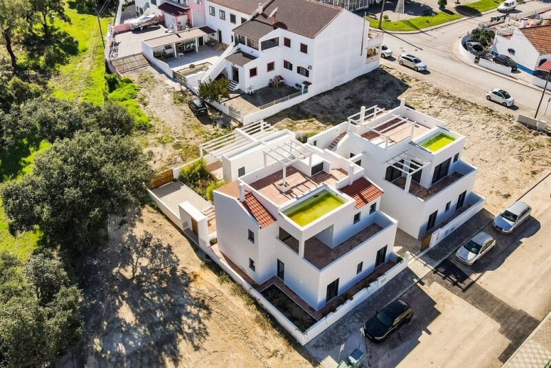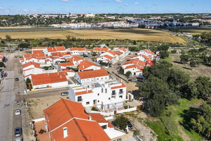 This extraordinary three-bedroom house, newly built and designed with the utmost care to meet the highest standards of comfort and modernity. Located on the road to Comporta, this residence combines the best of contemporary architecture with the serenity and natural beauty of the Alcácer region. Just minutes from exclusive Comporta, one of Portugal's most desirable and trendy areas, this home is the ideal retreat for those seeking quality of life, sophistication, and proximity to nature. With three generously distributed floors, this house offers a unique sense of space, brightness, and functionality. Upon entering, you are welcomed by an elegant and modern atmosphere, where the harmony between noble materials and high-quality finishes stands out. The first floor consists of a large living and dining area that seamlessly connects with a spacious, modern American-style kitchen, ideal for lovers of cuisine and socialising. This open space, with contemporary lines and state-of-the-art appliances, provides a sense of spaciousness and comfort. Natural light floods the entire house thanks to large windows, creating a pleasant and airy environment. The layout has been carefully designed to maximise comfort and functionality, making each room a welcoming and harmonious space. Each of the three bedrooms is a luxurious suite, providing maximum privacy and comfort. The rooms are spacious, with built-in wardrobes and en-suite bathrooms designed with modern design details and high-quality finishes. The suites offer a calm and relaxing environment, perfect for moments of rest and leisure. Each space has been carefully decorated with soft tones and top-quality materials, ensuring a sophisticated and welcoming atmosphere. One of the main highlights of this property is the rooftop terrace, where the tranquillity of the outdoor environment meets modern luxury. Here, a private pool invites you to enjoy sunny days while admiring a stunning view over the Alcácer do Sal landscape. This space is perfect for moments of relaxation or for hosting friends and family, offering a privileged view of the sunset and panoramic views.