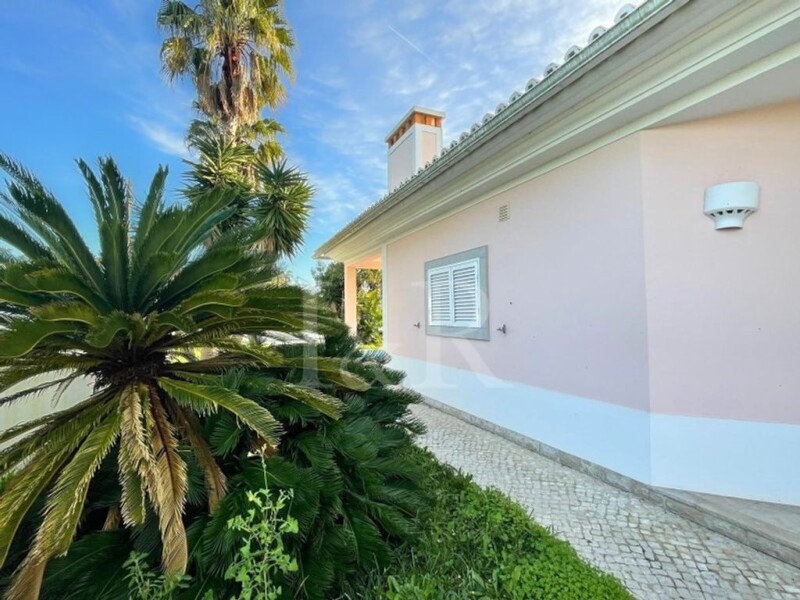 5-bedroom detached villa for sale in Sesimbra, situated in a quiet residential area just a few minutes from this fishing village, Praia do Meco and less than 40km from Lisbon. Set on a plot of 859m2, the villa comprises an entrance hall leading to a spacious living room of 57 m2 with a 360-degree fireplace and a semi-equipped kitchen with a utility room. On the more private side of the villa you'll find three bedrooms with built-in wardrobes, one of which is en suite with a walk-in wardrobe and balcony, plus a full bathroom. The villa also has a basement comprising an open-plan lounge with fireplace, storage space, wine cellar and kitchen with dishwasher, washing machine and extractor fan. This lower floor has two more rooms that can be used as bedrooms, two bathrooms, one complete and the other for support, and a storage area. Outside you'll find a large garden area with lawn and trees, a swimming pool with a pleasant leisure area that includes a porch ideal for enjoying moments of conviviality with family and friends, as well as an annex with a support kitchen, barbecue and wood-burning oven. In terms of finishes and comfort, the most noteworthy features include solar panels for water heating, central heating, white exterior shutters, a video intercom system and an automatic vehicle access gate. For the residents' privacy, the wall is also fenced off with sheet metal. Located around 15 minutes from the historic centre of Sesimbra and its crystal-clear beaches, the villa is just 6 minutes from Praia do Meco. The surrounding area has all kinds of shops and services, restaurants with a gastronomy rich in fresh fish and seafood. With many tourist attractions, such as the Castle of Sesimbra, the Fortress of Santiago or, for example, Cape Espichel, where you can enjoy unrivalled sunsets, this region invites you to enjoy water sports, boat trips and dolphin watching. New Year's Eve and Carnival are two of the biggest festive events of the year. As well as being ideal for building your family home, this villa is also an excellent investment option. Energy Rating: D.