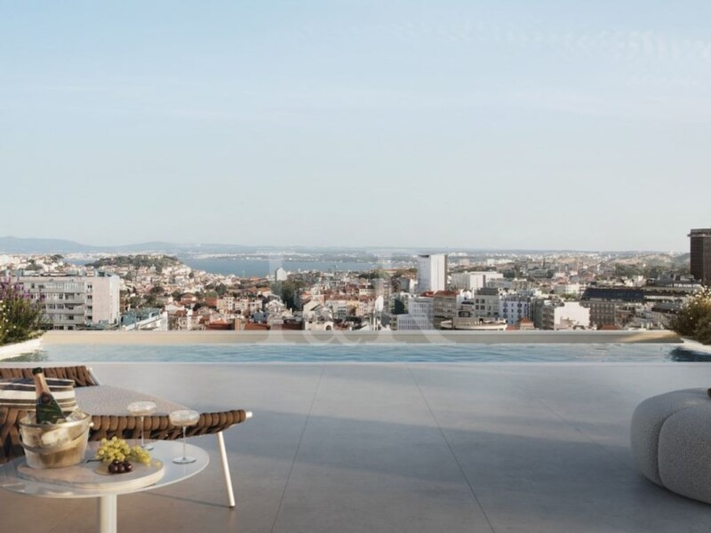 Fabulous 6-bedroom penthouse with a total area of 509 sqm located in the Pulse Lisboa development. The penthouse is spread over floors 11, 12, 13 and 14 of the building where it is located. On the 11th floor there is an 11 sqm hall, a 10 sqm suite and a 7 sqm balcony. On the top floor (floor 12), accessible via stairs, we come to a spacious 14 sqm hall with a guest bathroom. You then enter a large space divided into a 55 sqm living room and a 16 sqm dining room. On this floor you will also find a 25 sqm kitchen with a laundry area. From the living room and kitchen there is a magnificent 21 sqm south-facing balcony. The dining room also has a 12 sqm balcony. On the 13th floor, there are two bedrooms with closets, a full bathroom and three suites, two of them with 18 sqm and the master suite with 15 sqm plus a spacious 10 sqm dressing room and a magnificent 15 sqm bathroom. Also on this floor is a 14 sqm south-facing balcony. Finally, on the 14th floor, you'll find a wonderful 116 sqm terrace with a swimming pool, where you can enjoy panoramic views over the city and the river. In total, the outdoor areas total 170 sqm and on the top floor the view is 360º over the city. The penthouse also has 4 parking spaces with 2 chargers for electric vehicles and a private storage room. It should also be noted that the structure of the Pulse Lisboa penthouses is completely new, and the entire structure of the existing building has been reinforced to withstand seismic activity. The brand new Pulse Lisboa development reflects an authentic cosmopolitan expression, where life is lived with fluidity, sustainability and meaning. With a variety of inspiring and elegant indoor and outdoor spaces, it offers the opportunity to live in harmony, safety and well-being, in a lifestyle at your own pace. At Pulse Lisboa you will find 39 residential units spread over 14 floors: with indoor pool, sauna and turkish bath, private terraces with garden and pool, communal patio with garden, gym, co-working space, 24-hour concierge service and parking. With a contemporary and elegant architecture, it offers modern and sustainable amenities, including private parking with charging points for electric vehicles, a generous private outdoor patio with an urban garden perfect for leisure time, as well as other amenities that make this a project of excellence. Every material and detail has been thought out to highlight Lisbon's urban life and luminosity. Each apartment has been designed to meet the highest standards of daily life. The interiors offer generous, elegant rooms with high-quality finishes. Highlights include the double window frames with Reynaers thermal and acoustic insulation, electric roller blinds and multi-layer oak wood flooring. Italian kitchens equipped with Siemens extractor hood, microwave, electric oven, induction hob, combi, dishwasher, washing machine and tumble dryer. Electric underfloor heating in the bathrooms and thermostatic taps for the shower and bathtub by Grohe. The apartments are air-conditioned using air-conditioning units built into the suspended ceilings, Jung equipment and armored entrance doors with security locks. At Pulse Lisboa you'll find a sustainable commitment, through extraordinary energy efficiency solutions and the use of sustainable construction practices to reduce environmental impact through sustainable certifications, namely in categories such as energy efficiency, environmental performance, responsible use of water, photovoltaic solar energy and electric mobility. Located in the heart of the city, in one of Lisbon's most desirable areas, between Marques de Pombal and Campo Pequeno, discover Avenidas Novas, an eclectic neighborhood that combines history with modernity. Pulse Lisboa allows you to enjoy the convenience of being close to various services, shopping areas and endless leisure options. Energy Rating: A+.