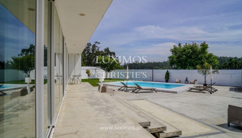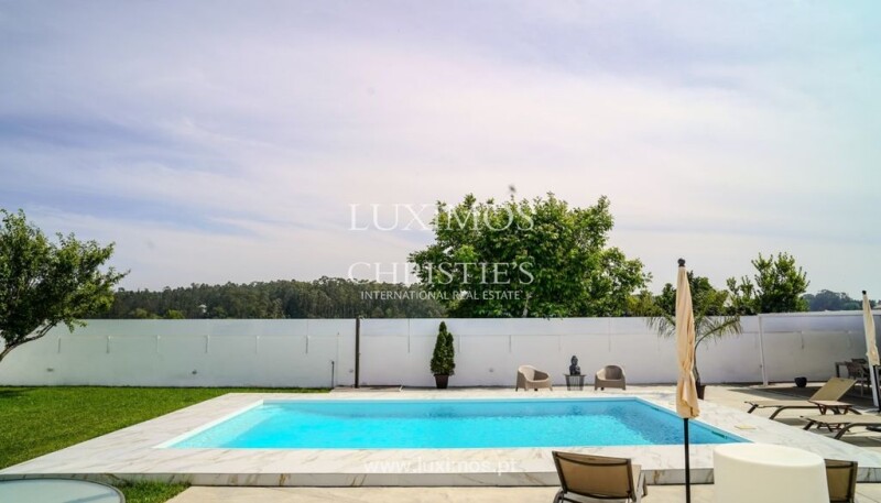A stunning villa, completely rebuilt, which offers the perfect balance between modernity and tranquillity. This unique property stands out for its spacious areas and immense natural light, provided by the large glazed openings that flood every space. It has a swimming pool perfect for hot summer days, where you can enjoy moments of leisure and relaxation, and a barbecue area ideal for socializing and al fresco dining. The support house, converted into an office area with direct views of the pool, also provides an inspiring environment in which to work; the property also has an outdoor garage with capacity for two vehicles, as well as outdoor parking for several cars, guaranteeing security and convenience. Situated in a quiet area, this three-bedroom property, one of which is a master suite with a generous walk-in closet, offers a peaceful haven away from the urban hustle and bustle, but with excellent access. It is located just 15 minutes from Porto, allowing you to enjoy the proximity of one of Portugal's most vibrant cities. It is 10 minutes from the airport, ideal for frequent travelers, offering convenience without compromising the quietness of the countryside. It is also 15 minutes from Vila do Conde, a charming town with beautiful beaches and a rich cultural history. CHARACTERISTICS: Plot Area: 1 210 m2 | 13 024 sq ft Deployment Area: 387 m2 | 4 166 sq ft Building Area: 443 m2 | 4 768 sq ft Bedrooms: 3 Bathrooms: 5 Garage: 2 Energy efficiency: A Internationally awarded, LUXIMOS Christie's presents more than 1,200 properties for sale in Portugal, offering an excellent service in real estate brokerage. LUXIMOS Christie's is the exclusive affiliate of Christie´s International Real Estate (1350 offices in 46 countries) for the Algarve, Porto and North of Portugal, and provides its services to homeowners who are selling their properties, and to national and international buyers, who wish to buy real estate in Portugal. Our selection includes modern and contemporary properties, near the sea or by theriver, in Foz do Douro, in Porto, Boavista, Matosinhos, Vilamoura, Tavira, Ria Formosa, Lagos, Almancil, Vale do Lobo, Quinta do Lago, near the golf courses or the marina. LIc AMI 9063.