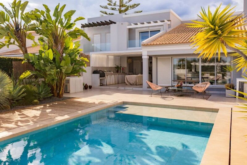 Located in Vilamoura, this villa is an excellent option for those seeking comfort and exclusivity in one of the most privileged areas of the Algarve. With modern architecture and a strategic location, the property stands out due to its proximity to golf courses, schools, and essential services. With a total area of 495 square meters, this villa offers spacious and well-distributed rooms. It features four bedrooms, one of which is a suite, and a total of three bathrooms. The basement is a true leisure area, with a cinema room, wine cellar, laundry room, game room, one bedroom, and a bathroom. On the ground floor, the open-plan living room and kitchen create a spacious and functional environment, complemented by a room with double-height ceilings and a bedroom. The exterior of the property is perfect for social gatherings, featuring a mature garden, private pool, and a covered barbecue area, ideal for outdoor dining. The villa also has a spacious terrace with direct access to the garage, providing a pleasant environment to relax and enjoy the Algarvean climate. The location is one of the standout features, being close to all amenities, including supermarkets, restaurants, and essential services. The proximity to the International School of Vilamoura makes this villa an excellent option for families. If you are looking for a contemporary property, well-located with excellent spaces, this villa in Vilamoura is the right choice for you.