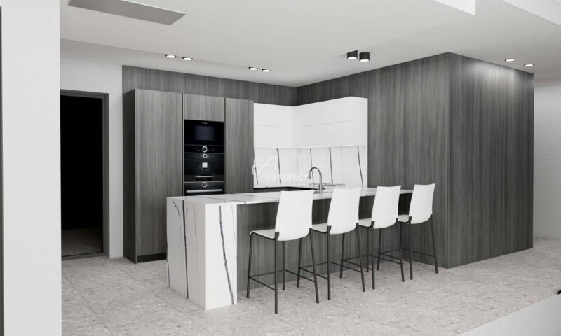 In a quiet Cascais area, this elegant four-bedroom villa harmonizes contemporary design with serene living. With 415 m² of gross construction area, the house has been carefully designed to offer a perfect balance between sophistication and comfort, framed by breathtaking views of clay tile rooftops and the ocean from the hillside. Spread over 207 m² of floor space, the property presents a concept of open spaces, promoting a fluid connection between the kitchen, dining room and living areas. Large sliding glass doors allow natural light to flood the interiors, creating a smooth transition into the extensive outdoor space. The garden, with more than 100 m², hosts a south-west oriented swimming pool, providing the ideal setting for both outdoor leisure time and lively gatherings between friends and family. On the ground floor, there is a multifunctional bedroom or office, along with a full bathroom, designed to offer convenience and comfort to guests or create a quiet workspace. On the upper floor, three large bedrooms, all with private bathrooms, ensure an environment of comfort and privacy. The serene views, coupled with the exquisite design, make every awakening a revitalizing experience. In the basement, the villa has covered parking for four cars, plus additional space for a fifth vehicle inside the property's secure gate. Modern equipment such as solar panels for greater energy efficiency, electric shutters, underfloor heating, heated pool, and a fully equipped kitchen complement the contemporary lifestyle that this residence offers. Construction works are currently at the finish/ fixture phase with some customisation still possible. Completion expected during the second trimester of 2025.
