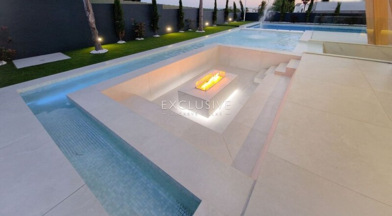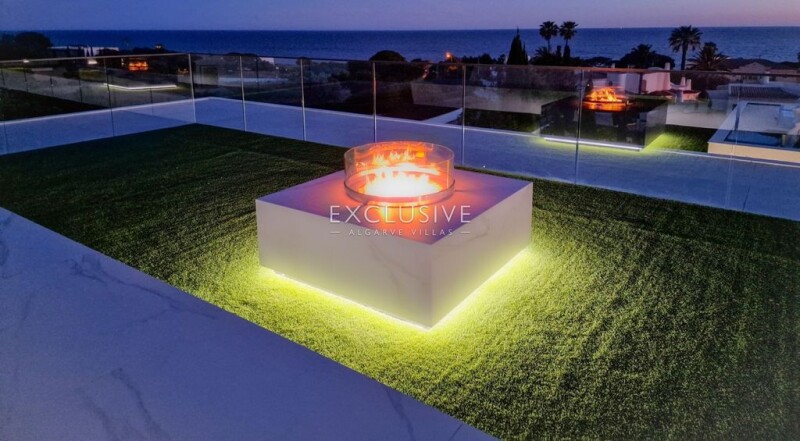 Fabulous 5 bedroom modern villa with fantastic sea views, and built to a very high standard, using quality materials. The villa is situated at a short 300 meter walking distance to the beach and near all amenities. The property is equipped with unique finishes and features, it comprises 5 ensuite bedrooms. On the ground floor you will find 2 of the ensuite bedrooms, a guest WC, large open plan kitchen leading you into the massive double height ceiling living/dining room. There is an space for an outside kitchen/BBQ area adjacent to the kitchen and there is a large pool with sunken in seating area and fire pit. The waterfall comes down from the first floor and goes into the basement area. The pool has a glass window giving extra light into the basement area. On the first floor there are 3 further ensuite bedrooms with access to the outside terrace. The is a large master bedroom with ample closets and large bathroom. The master has direct acess to a large terrace and outside jacuzzi with views to the coast. The rooftop offers a stunning panoramic coastal and ocean views, there is a large seating area and firepit. There is access via a staircase and elevator. The property has 2 elevators, in inside the property servicing all 4 levels (basement,ground,first floor and roof terrace). And then there is a ‘service' elevator going to the basement and first floor. The basement can be used to the new owners liking, there is ample car space, a separate space for a cinema/games room and large space for a private gym/spa area. This multi functional space can still be adjusted within limits, to the new owners design. The villa enjoys all latest technology from home control system, AC, waterbased underfloor heating, CCTV, extra thermal insulation, solar panels, electric pool cover and much more.