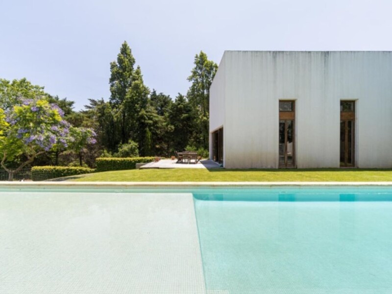 Contemporary 5 bedroom villa, in Sintra Villa, of contemporary architecture, with 5 bedrooms and swimming pool, implanted in a magnificent 9200 sqm lot, in Varzea de Sintra. Ideal for those who are looking for privacy, serenity and proximity to nature, being simultaneously close to restaurants, pharmacy and services. The National Palace and the village of Sintra, with all its typical local business and bustle, are just 15 minutes away by car. The construction is from 2003 and the villa, which includes a patio, was designed with two wings connected by a circulation area with an ample high ceiling. The two wings correspond to two complementary housing experiences. One of the wings, composed by two floors, comprises a living room, dining room, kitchen, storage area and a social bathroom on the ground floor. The highlight is the library, open to the living room throughout the width of this room and the office on the first floor with access by a staircase that is placed in the hall that has a double high ceiling. The living room has a double high ceiling and a generous visual connection to the exterior, not only for the patio but also for the land facing east. The other wing of the villa - the reserved wing - is the area where the bedrooms en suite and sanitary facilities area placed, occupying the ground floor. Upstairs there is a second room in open space that works as a multipurpose room, currently being a leisure area/ painting studio and office. In the basement, the area of services is concentrated, storage areas and logistical support, namely a wine cellar with cellar, a garage and a large dimensioned storage area to support the swimming pool. Also worthy of note are the generous outdoor swimming pool, the garden with a lawn area and mature trees, as well as the stream at the end of the property. There is also a wooden house with two bedrooms, bathroom and a kitchen integrated in the living room, with a salamander heater, which will delight the inhabitants and guests who want privacy. Energy Rating: B-.