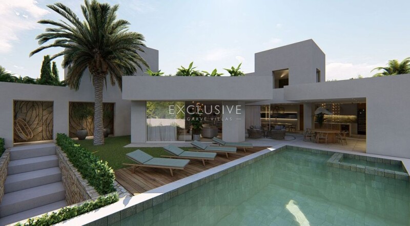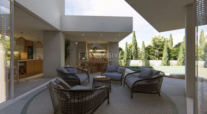 This property, now well advanced in construction, offers the best of modern living, where contemporary lines merge into a mediterranean way of life of inner-courtyards and covered terraces, where indoor and outdoor living spaces flow into each other seamlessly with style and excellent taste. Thus this four suite villa, where no expense has been spared in the choice of fittings, from the main door to the German designer kitchen, offers not only a modern and practical application of space, but together with the use of features like vaulted ceilings and stonewalls (optional) that traditional and the contemporary are united in a unique tranquility and features like vaulted ceiling and stonework walls unite the traditional and the contemporary , creating an environment of quality and tranquility. Located on a generous south facing plot, neighbouring the Boavista golf resort, close to the Porto de Mós beach and the town centre, that is not overlooked, you can enjoy peace and privacy, whilst being a very short dive to everything. Equiped with under-floor heating and AC through vent system, solar panels and electric gates. The plans consist of a large fully fitted kitchen, a dining room and spacious lounge, all leading on to the large covered terrace and pool terrace. On either side of the entrance atrium there are two spacious suites. The first floor offers large suites, each with its own balcony.. At the basement level you have the garage and an office (or other) space. The property will be sold landscaped, with a minigolf course included. If you like architecture & design, space & privacy, viewing this property is highly recommended. If you are a golf lover, you'll find the Boavista, Espiche, and Palmares golf courses just a few minutes away by car. The area offers a wide selection of beaches, from the 4km-long Meia Praia to the postcard-perfect Dona Ana beach and coves, as well as the breathtaking Porto de Mós. The Nautical Club and Marina, with their extensive range of nautical activities, create a stunning environment for sea enthusiasts, all within a short drive, bicycle ride, or even a walk. The historical center of Lagos adds to the appeal with its rich history, charming atmosphere, and vibrant commerce, offering the buzz of a real Portuguese city.