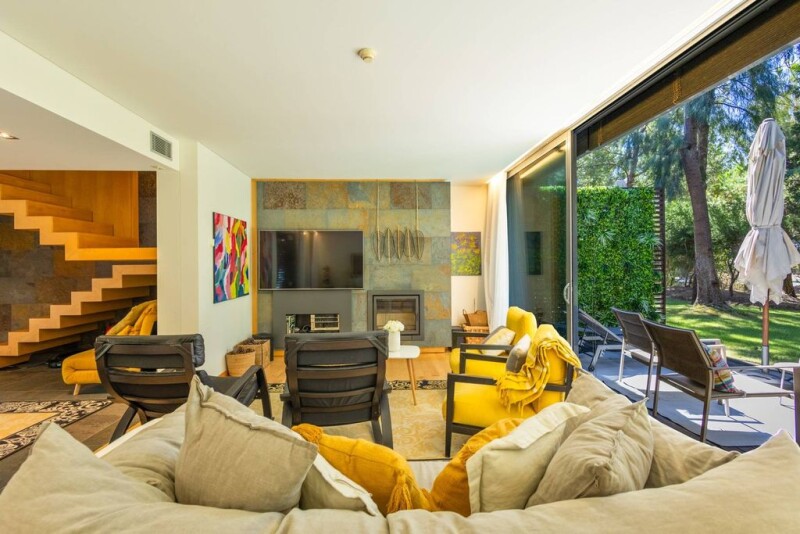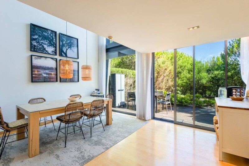 A two-bedroom villa in the private Tróia Atlantic Villas condominium, in a natural setting like the Troia Peninsula, a property that fuses its interior with its surroundings, where the presence of the sea and the pine forest give it character. The villa is complemented by interior and exterior furniture, a fireplace with a wood burning stove, underfloor heating, air conditioning, solar panels, electric shutters and a garden. An incredible opportunity to acquire a luxury property, clad in stone and double glazed, a 5-minute walk from the beach.